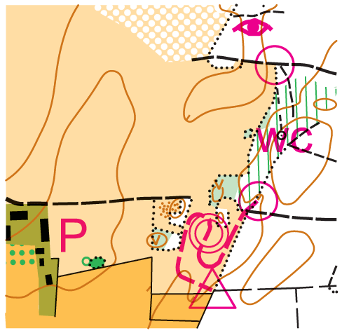 There is forbidden area marked with red colour in the map. The border of forbidden area is marked also in the landscape.